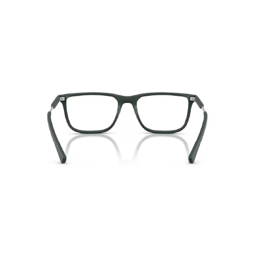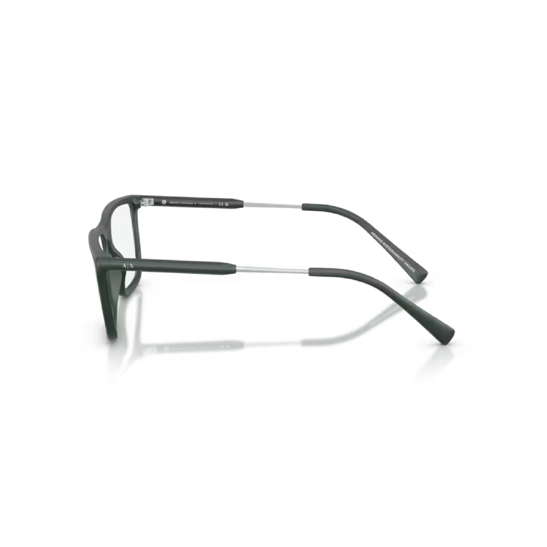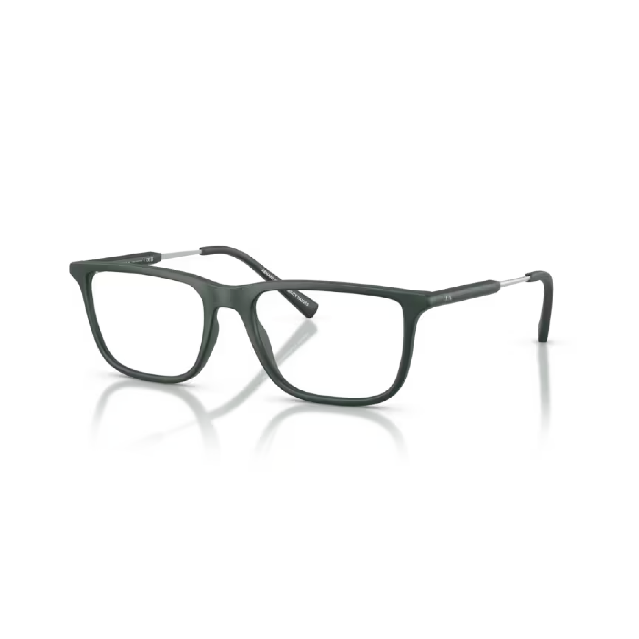 Diseño arquitectónico y estilo consciente: descubre las gafas ópticas masculinas de Armani Exchange en verde oscuro mate, pensadas para impresionar.